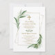 Design de cartão elegante com cor d'água, folhas de cantos, falso quadro de ouro moderno, sobre fundo branco. No verso, um quadro de ouro único com folhas de oliveira. Use a ferramenta Personalizar para adicionar suas informações. Para encontrar itens, por favor, visite a minha Encantadora coleção de eventos religiosos.