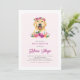 Convite para Chá de fraldas Floral de Retriever de Ouro de Aquarela | Convide familiares e amigos para o seu chá de fraldas com este convite floral personalizável. Apresenta ilustrações de aquarela de um Ouro bonito Retriever com flores cor-de-rosa, laranja e roxa. Estão disponíveis itens de correspondência e outros cães.