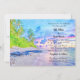 Você está planejando um casamento na praia? Esta linda, colorida, aquarela de um céu cor-de-rosa, praia de palma, pôr do sol é personalizável para todas as suas necessidades de informação de casamento. O lado inverso é violeta roxo, mas pode ser personalizado para qualquer coisa que você preferir.