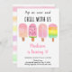 Este adorável convite apresenta picolés pintados manualmente em cores pastel.