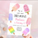 Este adorável convite apresenta picolés pintados manualmente em cores pastel.