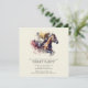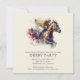 Convites de festas derby elegantes apresentam uma ilustração com aquarela de um cavalo e jockey correndo em direção à linha de chegada e seus detalhes em letra chic. CORRESPONDENTE a itens na nossa coleção.
