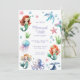 Sob o convite de aniversário no mar para crianças de sereia. Ilustrações coloridas, adoráveis e divertidas para a sua festa de aniversário com bolhas de água bonitinhas, peixes de estrelas-do-mar, golfinhos, caudas de baleia e sereia, algas, polvos e águas-vivas. Este design é totalmente personalizável e vem com suprimentos de festas correspondentes na nossa Coleção de Aniversário de Sereia Watercolor.