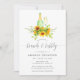 Trendy hand pintou o brunch de girassol com a cor d'água e o convite à espumante com pano de fundo de lavagem de cor verde-d'água.