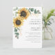 Convite De Casamento Eucalyptus Floral De Girassol. Crie um cartão de convite para o casamento Floral de Girassol moderno com este modelo bonitinho com um belo buquê floral rústico, com tipografia moderna. DICA: Cartões de suíte de casamento iguais, como RSVP, programas de casamento, banners, tapeçarias, etiquetas de presentes, placas e outras pegadas de casamento e guloseimas estão disponíveis na coleção abaixo com esta design.