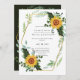 Lindos girassóis russos com borda verde de moldura geométrica dourada. campos de modelo de texto para ambos os lados para adicionar todos os seus detalhes adicionais, incluindo rsvp, registro de presentes, recepção, alojamento e muito mais.