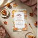 Sophisticated Thanksgiving invitation featuring an elegant watercolor border of pumpkins, pie slices, wine glasses, roasted turkey, and autumn leaves. Clean white center with refined typography creates a formal yet warm appearance. Perfect for upscale Thanksgiving dinners and holiday celebrations. Beautiful balance of festive imagery and functional design with clear event details.