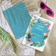 Casais coloridos convite para chás com um quadro teal e uma borda com um tucano ousado sentado entre flores de hibisco e folhas de palma. O reverso repete o padrão das folhas de palma em tons de chalé. Adicione os detalhes do evento usando o modelo fornecido. São perfeitas para eventos de verão, tropicais e/ou de destino. Procure ID577 para ver os produtos correspondentes.