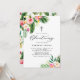 Convide convidados para o seu evento com este convite de batizar tropical personalizável. Apresenta flores e folhas tópicas aquáticas com um padrão tropical correspondente. Personalize este convite de batização de aquarela adicionando seus próprios detalhes de evento. Este convite batizante tropical é perfeito para batizações de verão.
