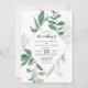 Lindas folhas aquáticas e silvestres em cores caçam verde e branco com uma estrutura de ouro geométrica e um roteiro de caligrafia moderno. Perfeito para casamento ou evento especial no estilo. Personalizado com seu próprio texto especial e use-o para o partido ou evento de sua escolha. Itens correspondentes estão disponíveis em nosso compro.