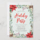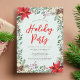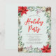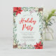 Celebre a temporada de inverno com este elegante modelo de convite para festas de férias em áreas florestais verdes. Este design apresenta flores pintadas manualmente de poinsettia vermelha, cones de pínus, bagas e borda de galhos de folhas.