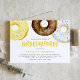 Convide convidados para o seu evento com este convite de aniversário personalizável. Apresenta rosquinhas de cor amarela, chocolate e chocolate branco, vidradas com espirais coloridas. Personalize adicionando seus detalhes. Este convite de aniversário de rosquinha é perfeito para qualquer tema ou estação do evento. Outras cores estão disponíveis.