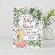 Esta bela design de aquarela apresenta um adorável bebê Girafa desfrutando de uma grande fatia de melancia enquanto se sentava entre as folhas tropicais na selva. Ele apresenta uma variedade de paletas verdes, pretas e cor-de-rosa com uma combinação mista de lindas fontes decorativas. O convite é totalmente personalizável, portanto você pode adicionar seus próprios toques pessoais.