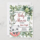 Este belo design de aquarela apresenta um adorável urso Panda desfrutando de uma grande fatia de melancia enquanto sentado entre as folhas tropicais na selva. Ele apresenta uma variedade de paletas verdes, pretas e cor-de-rosa com uma combinação mista de lindas fontes decorativas. O convite é totalmente personalizável, portanto você pode adicionar seus próprios toques pessoais.