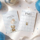 Personalize this adorable light dusty blue, beige, and white "We Can Bearly Wait!" teddy bear theme baby boy shower BINGO card featuring featuring fill-in-your-own blank squares with cute gift opening instructions, a sweet watercolor teddy bear wearing a blue bow free space, and script typography on the front, with custom mommy's name, shower date, and teddy bear holding checkerboard balloons over blue ticking pinstripes on the back. It's the cutest on-theme fun shower game! ***Please be sure to check the "no envelopes" button before adding to cart. Discover another bingo card game interactive version, matching invitation, diaper raffle card, books for baby card, favor stickers & tags, decor and more in the full collection above ♥ Custom design requests, colors, product collection additions, and template questions are always welcome - click the "message" button or email direct (with a quick response time!): contact@figandlilyco.com. Design is lovingly created by Fig and Lily Studios - sending blessings and thanks for being here with us ♥