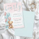 The back features a coordinating background that ties in the pink and blue palette for a clean, cohesive finish. Perfect for year-round baby showers, this charming and versatile invitation is available as a printed card or a digital file for easy sharing or local printing.