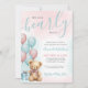 “We can BEARly wait” sets the tone for this adorable baby shower invitation, updated with a soft mix of pink and blue for a surprise gender or gender neutral celebration. The design features watercolor balloons in pink and blue tones, a cute tan teddy bear with a simple bow, and a coordinating gift box, all set against a light, airy background for a sweet and modern feel.