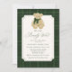 Invite loved ones to celebrate with this classic “We Can Bearly Wait” baby shower invitation featuring a hand-painted watercolor teddy bear wearing a green scarf. The phrase “We Can Bearly Wait” is displayed in elegant dark green calligraphy with matching serif lettering. Your baby shower details appear below, framed within a vintage-style cream border surrounded by a watercolor green plaid background. With its timeless preppy design and cozy charm, this invitation is perfect for fall and winter boy baby showers.
