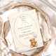 Soft gingham, scattered golden stars, and a scalloped heirloom frame set the sweetest scene for this “We Can Bearly Wait” design. A cuddly teddy bear holding a delicate balloon sits among dreamy clouds, creating a warm and timeless nursery-inspired aesthetic. The gentle blue and beige palette makes it perfect for a baby boy celebration while still feeling soft and classic. Cozy, charming, and effortlessly elegant — a beautiful way to gather loved ones before baby arrives.