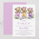 Celebrate the imminent arrival of your bundle of joy by inviting your friends and loved ones to your baby shower with this invitation featuring three adorable teddy bears wearing polka dot overalls playing jump rope.. The customizable text allows you to effortlessly add your name, date and time of the celebration, and the RSVP information. A variety of paper types and corner styles are available for your unique invitations, along with the option to download if you prefer a digital format.
