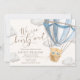 Celebrate the Mom-to-be with this cute we can nearly wait baby shower invitation. The design features a soft hot air balloon teddy bear design and modern fonts. The script heading is an image that cannot be edited. All of the other text is fully editable. For more advanced customization of this design, simply select the "Customize It" button above.