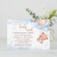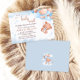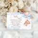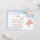 A sweet baby shower design featuring an adorable teddy bear hanging from a soft blue and blush balloon bouquet with delicate star accents in the background. The playful “We Can Berly Wait” phrase gives it a charming and memorable touch, while the watercolor style keeps the overall look soft, elegant, and dreamy. Perfect for celebrating a baby boy or a pastel baby shower theme with a cute teddy bear motif.