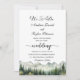 An elegant Wedding Invitation with watercolor mountains and pine trees that you can customize with your details.