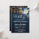 This Wedding Anniversary Invitation has an elegant script calligraphy completed by wonderful blue wood, garden string lights and white blue floral with gold glitter. You can personalize this Invitation with your Wedding Anniversary details.