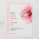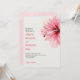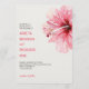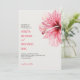 Wedding invitation card with a pink floral design on the top right. Names "Arieta Benson and Richard Roe" in bold red. Elegant and modern tone.
