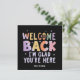 Celebrate the first day of school in style with this “Welcome Back I'm Glad You're Here” retro design! Perfect for teachers, students, and kids in preschool, special education, or any grade—this cool, positive outfit spreads smiles in every classroom. A funny, happy gift idea for men, women, and kids alike!