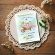• A sweet watercolor design featuring a fox, bunny, hedgehog, and squirrel sitting in a rustic wooden wheelbarrow filled with pink and blue roses and greenery. This charming set is perfect for a spring, garden, or woodland-themed baby shower.