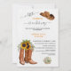 Design único e encantador com botas aquáticas, chapéu de cowboy, girassóis, cacto sobre fundo de papel aquoso branco. Use a ferramenta Personalizar para adicionar suas informações. Visite, por favor, minha Coleção Floral Pampas Grass.