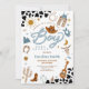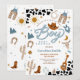 Saddle up for a memorable celebration with this western cowboy baby shower invitation! Featuring playful cowboy hats, boots, cacti, and cow print accents, this rustic design is perfect for honoring a little boy on the way. The bold fonts and charming western illustrations create a fun, festive atmosphere that sets the tone for your event. Ideal for country-themed showers, this invitation blends rustic charm with modern style to delight guests and make your party unforgettable.
