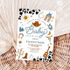 Saddle up for a fun celebration with this western-themed baby shower invitation, perfect for honoring a special mom-to-be. Featuring cowboy hats, boots, lassos, cacti, and rustic cow print accents, this design captures the charm of the Wild West. The stylish layout and playful details make it ideal for country-inspired gatherings, rodeo-themed showers, or rustic barnyard parties. Personalize with your event details to create a unique keepsake guests will love.