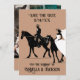 Anuncie a data do seu casamento à família e amigos com uma noiva e cavalaria nesta elegante carta de termia ocidental.