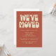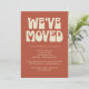 Celebrate your new home with this vintage-inspired housewarming party invitation featuring warm rust tones and groovy retro lettering. The 70s-style typography and minimalist design create a fun, welcoming vibe for your celebration. Fully customizable with your party details, address, and RSVP information. Perfect for inviting friends and family to tour your new place.