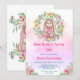 © Socialite Designs & LICENCORS. Um belo convite de aniversário para o bebê, com uma encantadora menina aquática coelho coelho, coroa floral e fundo aquoso. Um convite maravilhoso para a festa de aniversário de uma menina.