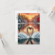 A carta apresenta uma cena impressionante de dois golfinhos elegantes formando uma forma cardíaca com seus pescoços em um lago sereno e calmo. Eles deslizam graciosamente através da água. Ao fundo, montanhas majestosas se erguem contra um céu pintado em tons quentes de pôr do sol do ouro, apontando para um anoitecer mágico. Árvores de outono enquadram a cena, enquanto a neve macia e esvoaçante mancha a paisagem, evocando uma sensação quente, mas interesante. A atmosfera encantadora convida-o a abraçar o calor do amor e da paz durante a estação festiva.*