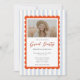 Blue stripes orange scallop grad party design with a modern script title and photo layout. Perfect for high school or college graduation celebrations. Stylish, fresh, and easy to personalize for a polished and memorable grad party event.