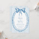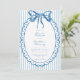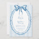 This whimsical invitation features a soft blue watercolor bow and a scalloped oval frame against a classic striped background. Perfect for a wedding with a preppy or coastal aesthetic, this charming design provides a sweet, hand-painted look for your special celebration. Created by Simply Farmhouse Press.