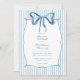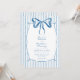 This whimsical invitation features a soft blue watercolor bow and a playful geometric frame against a classic blue and white striped background. Perfect for a wedding with a preppy or coastal aesthetic, this charming design provides a sweet, hand-painted look for your special celebration. Created by Simply Farmhouse Press.