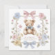 Announce your baby shower with a touch of playful elegance using this charming teddy bear themed invitation. The centerpiece is a delightful teddy bear adorned with a sweet blue bow, surrounded by a beautiful arrangement of pastel flowers and delicate greenery. The elegant script and soft color palette create a sophisticated yet heartwarming feel, perfect for celebrating mom to be's special day. This card is sure to set a joyful tone for your baby shower fun.