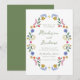 Celebrate your wedding day with charming watercolor elegance using this whimsical folk art floral wedding invitation. The design features the couple’s first names displayed in green handwritten script at the center, creating a romantic and personal focal point. A delicate oval frame of hand-painted folk art florals and botanical accents surrounds the text, showcasing colorful blooms and greenery in shades of blue, pink, golden yellow, orange, and green. The symmetrical arrangement creates a graceful, balanced composition that feels both playful and refined. Perfect for garden weddings, outdoor ceremonies, and couples drawn to artistic watercolor wedding stationery, this invitation offers a distinctive and memorable way to share your special day with family and friends.