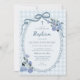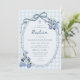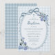 Convites Whimsical Gingham Dusty Blue Floral Boy Baptism