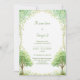 Set a serene and magical tone for your big day with this light-filled botanical composition. The design features a pair of delicate watercolor tree motifs anchored at the bottom, their branches laden with soft lime green foliage and tiny white blossom clusters. An overhanging arch of climbing vines and greenery frames the top, creating a natural window against the airy, minimalist background. The hand-painted texture and soft color palette evoke a sense of fresh, organic elegance. This wedding invitation is an ideal choice for an outdoor garden ceremony, a rustic woodland celebration, or a minimalist botanical-themed event. It ensures your announcement feels as light and enchanting as your love story from the moment it is received.