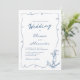 This whimsical hand drawn white and navy blue nautical wedding invitation features a squiggly frame with an anchor in the lower right corner.