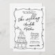 Convocação De Casamento De Frame Envolvido À Mão. Este convite de casamento, fantástico e criativo, é perfeito para casais que procuram dar um tom lúdico e alegre para o seu grande dia. Projetado em preto e branco clássico, o convite apresenta uma estrutura giratória com detalhes cardíacos charmosos que rodeiam a informação do seu casamento, apresentada numa mistura deliciosa de scripts e fontes escritas à mão para uma sensação casual, mas elegante. No canto inferior esquerdo, uma ilustração divertida de uma torre de vidro de champanhe, com uma garrafa de champanhe a cair borbulhante sobre o topo, acrescenta um toque animado e comemorativo. Esse detalhe peculiar se encaixa perfeitamente com a estrutura giratória para criar um design único e memorável. O verso do convite apresenta um sotaque doce — um monograma manuscrito das iniciais do casal acompanhado de um charmoso esboço de uma garrafa e vidro de champanhe, ligando o tema. Totalmente personalizável, este design é perfeito para casais que querem algo de moda, na moda e que explodem com personalidade. Disponível em uma versão impressa ou como um arquivo digital baixável para fácil compartilhamento ou impressão local.