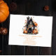 Convide os convidados para uma cesta mágica e assustadora de Halloween com este convite encantador. Apresenta uma casa encantadora assombrada rodeada por abóboras vibrantes e folhas de outono, perfeita para uma festiva e amigável celebração do Dia das Bruxas.