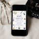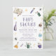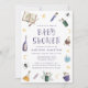 Host a spellbinding baby shower with this whimsical Halloween invitation featuring illustrated potion bottles, a spellbook, spiders, stars, moons, and mystical crystals. The playful purple “Baby Shower” text adds a touch of spooky fun, while the soft color palette keeps it perfect for celebrating the mom-to-be. A charming choice for Halloween baby showers or magical autumn gatherings.