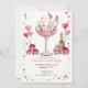 Celebrate in style with this playful Galentine's Day illustration featuring a whimsical oversized martini glass with glamorous legs in red heels, surrounded by pink gift boxes, champagne bottle, cupcakes, and heart balloons. This fun and creative design captures the joy and humor of friendship celebrations. Perfect for a memorable girls' party that promises laughter, treats, and bubbly fun.